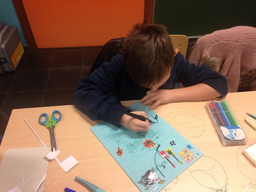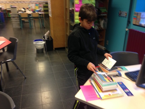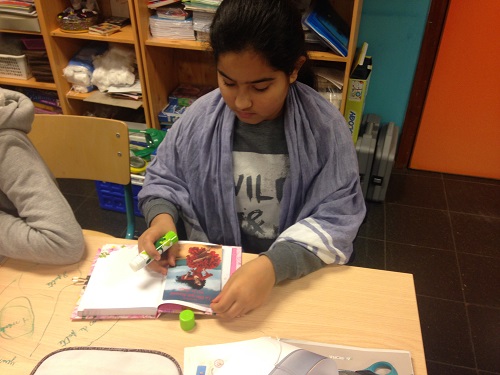 Nous lisons 1/4 d’heure par jour nos livres et nous complétons notre carnet individuellement. Nous complétons aussi une affiche commune avec les informations autour des couvertures du livre.