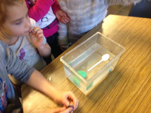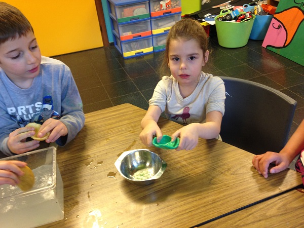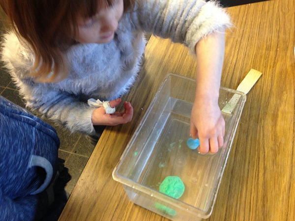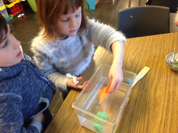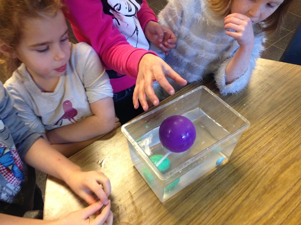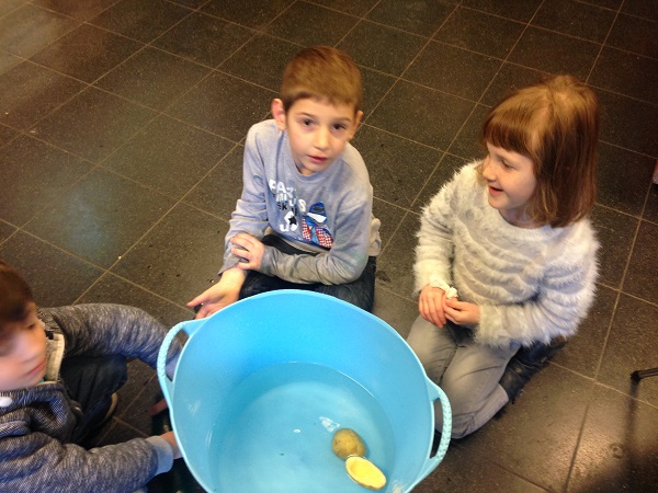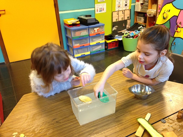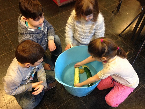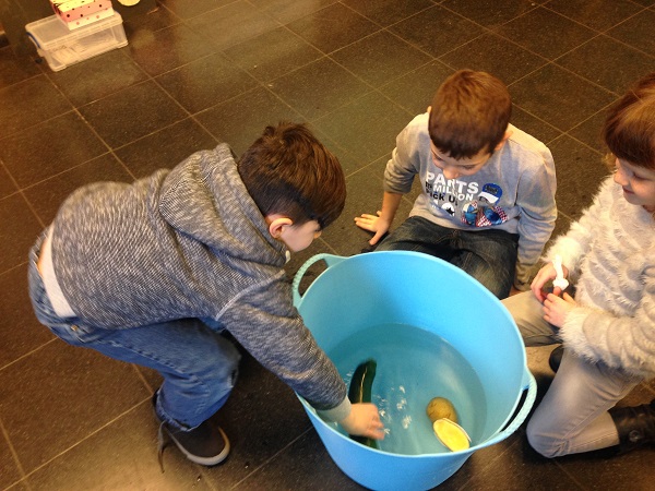 Nous avons alors dû transformer une boule de plasticine, une pomme de terre et une courgette pour qu’elles flottent.